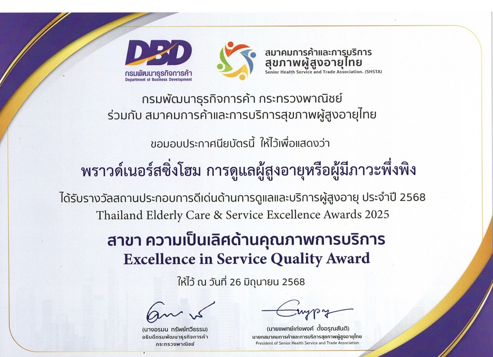 ดูแลตลอด 24 ชม.โดยบุคลากรมืออาชีพ ที่ผ่านการฝึกอบรมเข้มข้น ตามกฎกระทรวง และมีจำนวนสัดส่วนที่เพียงพอต่อการดูแลตามที่กฎหมายกำหนด